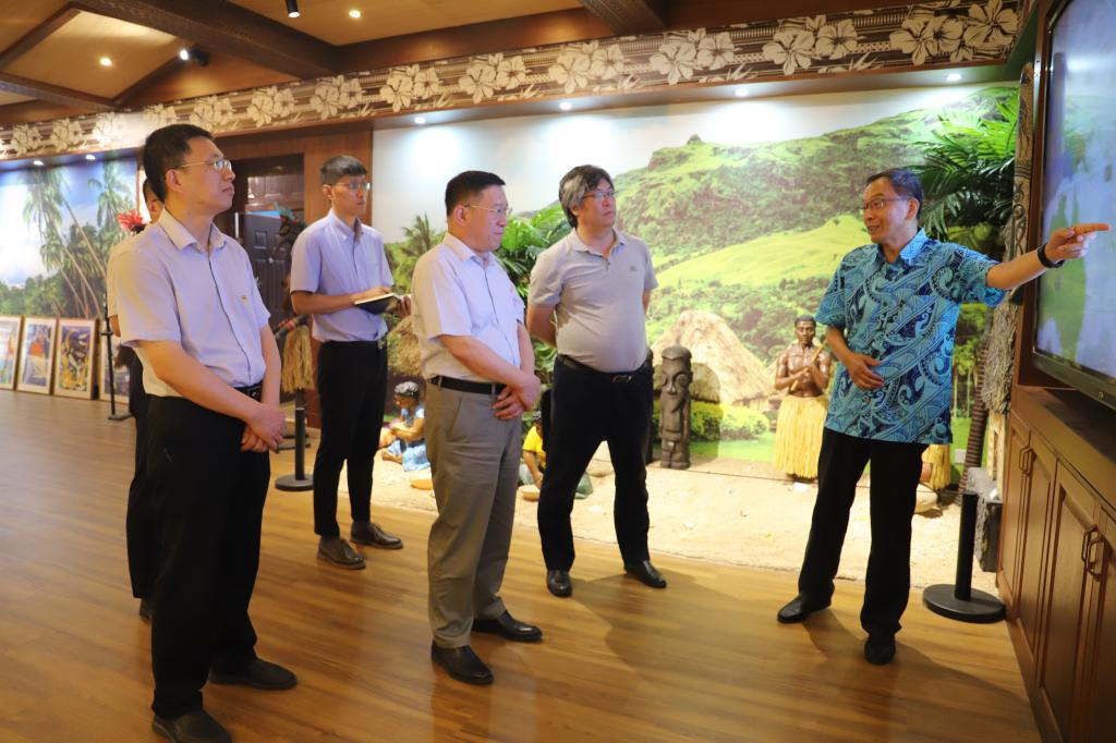在聊城大学,校党委书记关延平接待了调研组一行,与谭秀森共同回顾了聊城大学的办学历史,重温了在校的求学时光,并详细了解了伟德官网临沂新校区建设发展情况。校长王昭风简要介绍了学校近年来发展情况尤其是学科建设、人才培养等方面取得的成绩。双方交流了教育教学改革、内控建设等方面的经验做法。调研组一行实地考察了太平洋岛国研究中心、聊城毛驴高效繁育与生态饲养研究院。