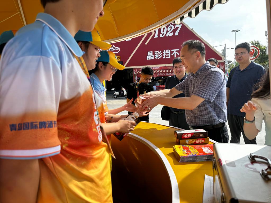 在第33届青岛国际啤酒节西海岸会场,郭建锋实地察看了志愿者的工作环境,详细了解了志愿者工作时间、工作职责和保障情况,与在园区西二门入口处和志愿服务岗亭等岗位的志愿者代表们亲切交流并送上消暑慰问品。郭建锋对志愿者们不畏骄阳、不怕酷暑,通过参与志愿服务磨砺意志、增长才干,积极投身青岛城市发展建设的奉献精神和出色表现表示肯定;勉励同学们珍惜此次宝贵机会,继续保持昂扬的斗志,发扬“奉献、友爱、互助、进步”的志愿服务精神,锻炼坚强的意志品质,展现理工学子风采,让理想信念在志愿服务中升华,让青春在无私奉献中闪光,努力实现服务成长双丰收,为圆满完成本届啤酒节志愿服务做出新的贡献;同时叮嘱同学们注意防暑降温、劳逸结合,保证服务过程中自身安全和健康。
