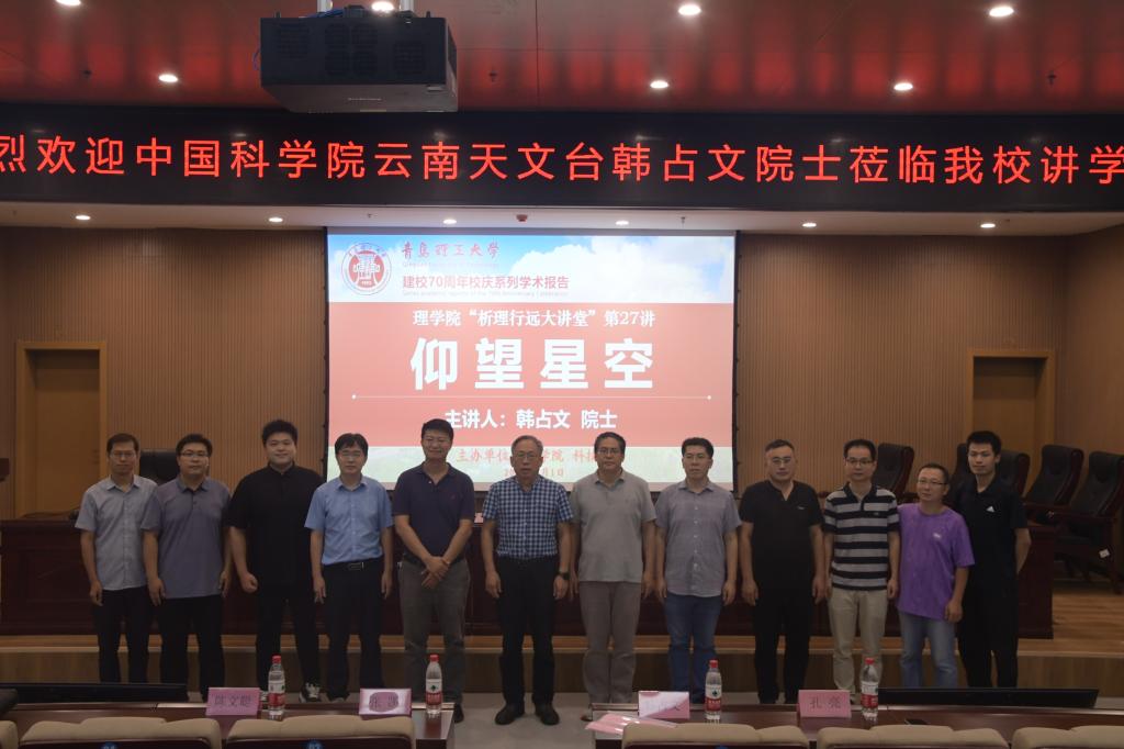 为庆祝伟德官网建校70周年,更好地开拓青年学子的视野和思维,加强创新精神的培养,9月1日,由理学院、科技处和发展规划与学科建设处共同主办的“建校70周年校庆系列学术报告暨析理行远大讲堂第27讲”在图书馆一楼报告厅开讲。大讲堂邀请了中国科学院云南天文台韩占文院士为全校师生作了题为《仰望星空》的报告。报告会由副校长张凯主持,理学院院长孔亮教授、理学院学术委员会主任陈文聪教授等参加了报告会。