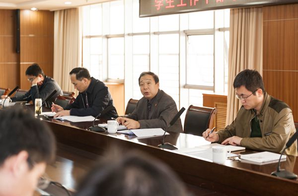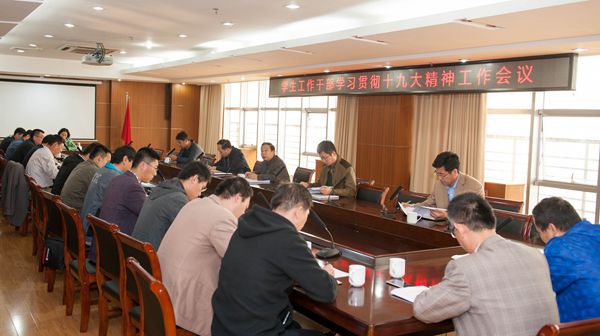 随后,学生处处长郭建锋就在学生工作中开展学习贯彻十九大精神活动进行了工作布置。他要求广大学生工作干部应全面提高思想认识,先学一步、深学一层,将思想和行动统一到十九大报告精神上来,分阶段分步骤开展好师生的学习宣传工作。要大力发扬理论联系实际的学风,深入开展报告学习,面向学生,积极开展宣传教育工作。扎实工作,把学习贯彻十九大精神落实到具体工作当中。