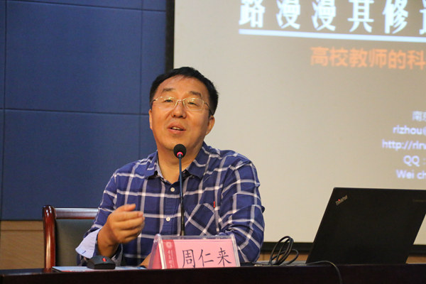 南京大学周仁来教授作《路漫漫其修远兮——高校教师科研之路》的专题报告。