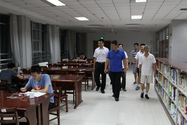 8月25日晚、26日上午,学校副校长李国华、校区副校长朱卫东带领办公室、教务部、学生工作部、总务部、保卫部负责人深入校区各单位、场所,检查开学各项准备工作。