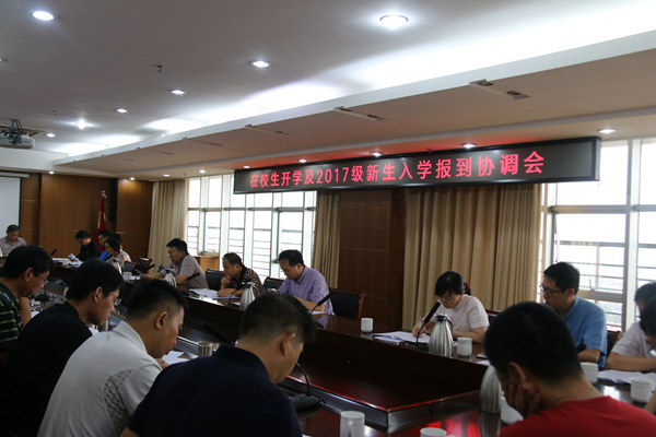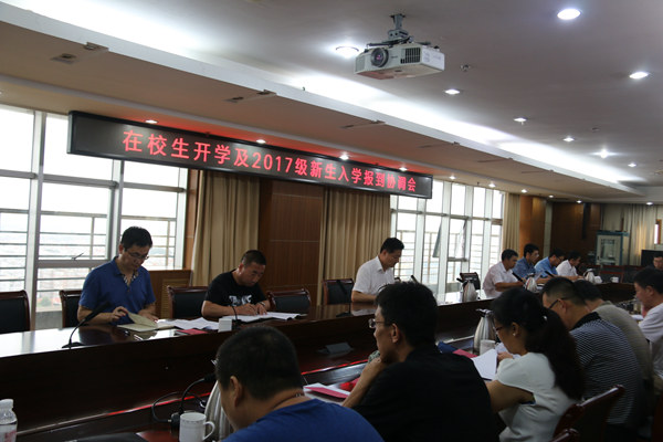 学生处处长郭建锋汇报了在校生开学的相关工作安排,主要做好学生报到统计、学生教育、思想动态调查、学生个人素质评价及先优评选、班级基础性工作、公寓管理、贷款和困难生工作。郭建锋并就2017级迎接新生工作做了进一步安排。