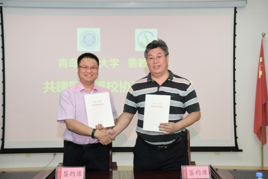 苗吉军、吴立义分别代表校企双方签订了《伟德国际1946bv官网鲁教集团共建国际暑校协议》。