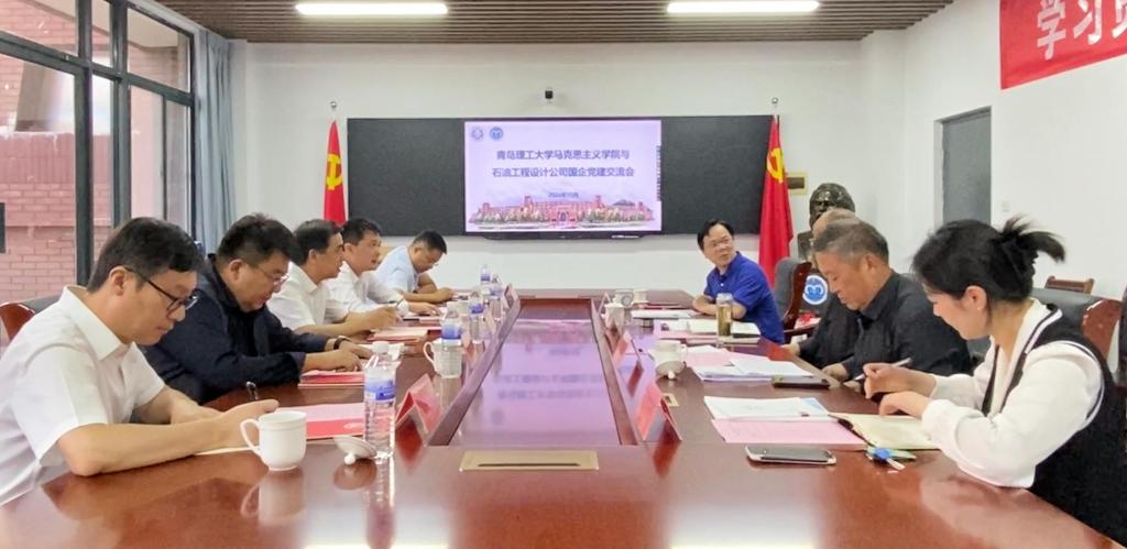 10月10日下午,马克思主义学院与石油工程设计公司开展国企党建交流会,会议在主教学楼A310会议室举行。石油工程设计公司党委书记、副总经理张文峰,党委副书记、纪委书记、工会主席毛丛友,党群工作部主任、工会副主席马旭,石油工程设计公司青岛分公司经理李格,党支部书记修钰翔,校党委常委、统战部部长、马克思主义学院党委书记陈伟,驻青国企党建与发展研究会副秘书长、马克思主义学院教授王菁华,副教授王妺参加本次会议,会议由马克思主义学院院长华章琳主持。