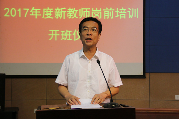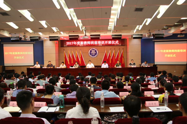 8月14日上午,2017年度新教师岗前培训开班仪式在学术报告厅举行。校党委书记、校长王亚军作动员讲话,党办校办、组织部、宣传部、人事处、教务处、科技处、研究生处、学科办等有关部门负责人和2016、2017年152名新进教师参加开班仪式。