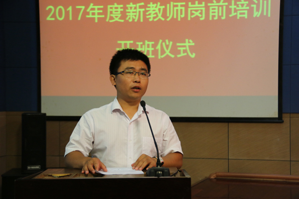 人事处处长齐德义主持开班仪式并介绍了岗前培训要求及有关安排,希望大家正确认识岗前培训的意义,高度重视、全程参与,严格遵守培训纪律,自觉加强学习交流,尽快实现角色转换,融入到学校的事业发展中来。商学院云乐鑫博士作为新教师代表在开班仪式上发言。