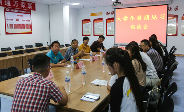 杨向荣一行首先来到黄岛区长江路街道办事处,与伟德官网9名参加见习同学举行座谈。同学们分别就见习所在社区、工作职责、感悟收获等方面谈了自己的感想体会,并感谢团区委和街道办事处提供的见习机会,表示一定会珍惜见习机会,勤恳工作,勤勉认真,圆满完成见习工作。杨向荣充分肯定同学们的见习工作并寄语同学们广泛参加各类志愿服务活动,锤炼高尚品格、履行社会责任,在服务实践中拓展视野、增长才干、积累社会经验、实现自身价值。