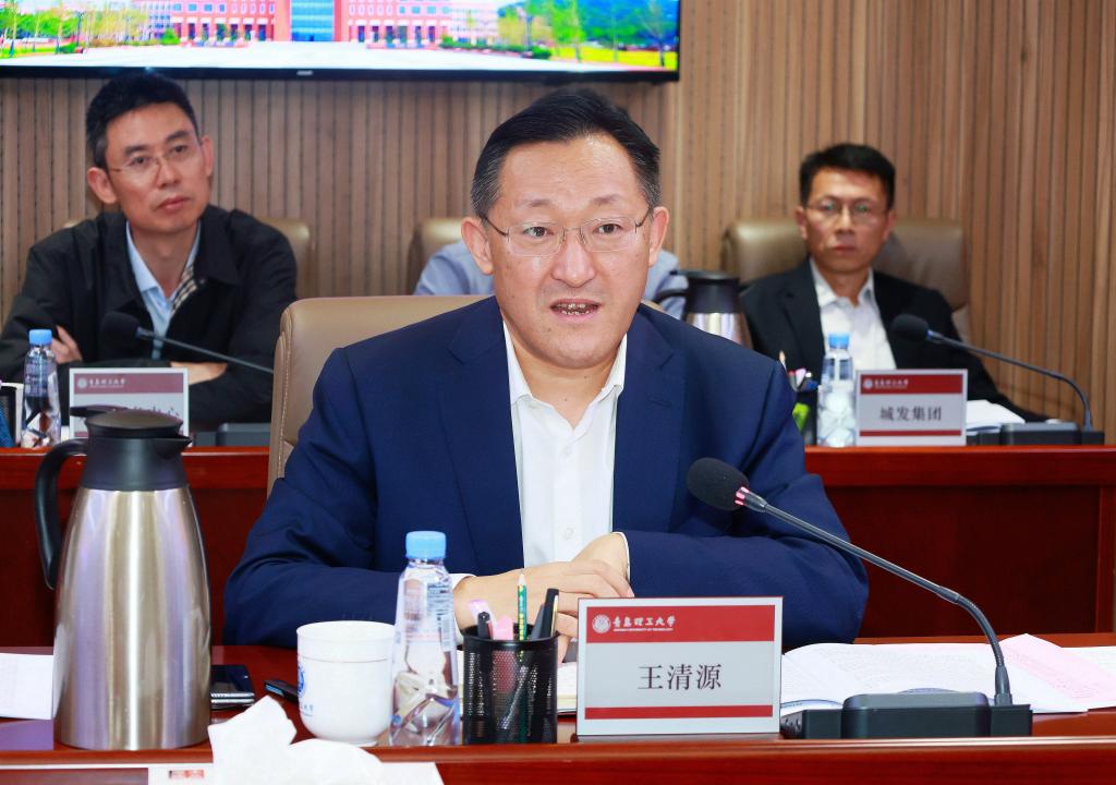 杨赟对王清源一行来校调研表示热烈欢迎,向西海岸新区工委管委、黄岛区委区政府长期以来对学校建设发展给予的鼎力支持帮助表示诚挚的感谢。他指出,大学因城市而兴,城市因大学而盛。长期以来,学校与新区有关部门、企事业单位在党建共建、产教融合、科教融汇、人才培养、成果转化等诸多领域开展了务实合作,并取得了显著成果。下一步,学校将继续坚定扛牢培养高层次人才和服务高质量发展的历史重任,面对当前大变革、大机遇、大挑战的新形势,学校将主动对接新区经济社会发展需求,着力打造校地、校城共生共兴共荣的良好发展生态,切实发挥学科专业与人才资源优势,全力以赴为新区打造新时代社会主义现代化示范引领区贡献青岛理工力量!