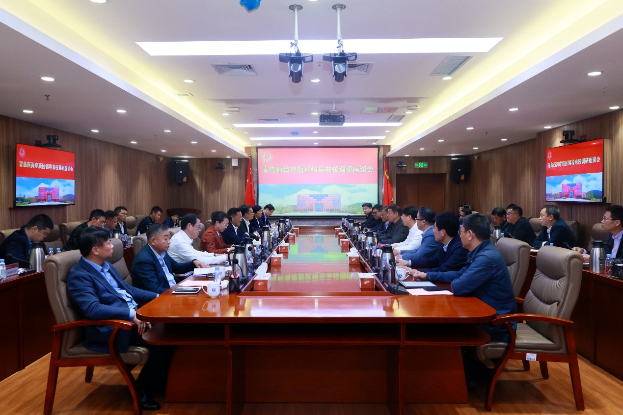10月29日下午,青岛西海岸新区工委副书记、黄岛区区长王清源,黄岛区政府党组成员、副区长洪金鑫等一行13人来校调研座谈。学校党委书记杨赟,党委副书记、校长张凯会见王清源一行并出席座谈会,党委副书记车景华,党委常委、副校长陈连军,党委常委、宣传部部长、党政办公室(巡察工作办公室)主任钱均参加座谈会。