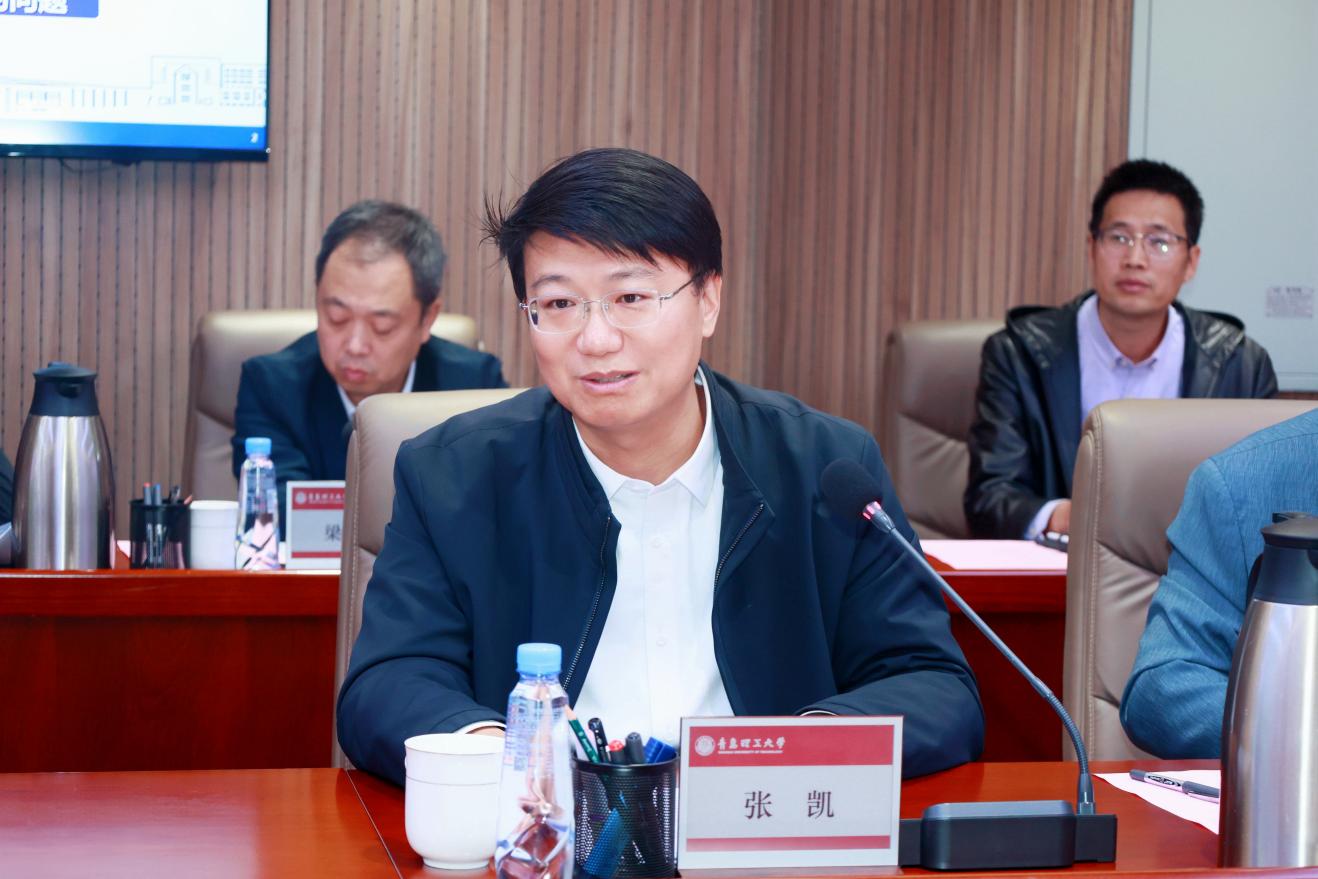 张凯介绍了学校基本情况和校地融合发展、服务新区能力清单等情况。他表示,近年来,在西海岸新区的关心支持下,学校坚定不移走内涵式高质量发展道路,加快推进校地、校城融合发展,在人才培养、人才引育、文化交流、社会志愿服务和科技成果转化等方面取得了显著成效。学校将进一步持续深化与西海岸新区的深度融合,精准聚焦西海岸新区重点工作,以新区和企业的技术需求为牵引,整合学校人才、学科、平台资源,助力新区企业转型升级和新区高质量发展;同时,希望新区为推动学校高质量发展给予更多资源和政策支持。