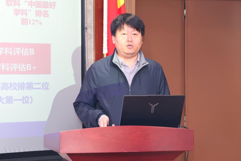 侯东帅汇报了土木工程学科在科研成果和人才培养等方面的成绩、存在的问题和下一步努力的方向。