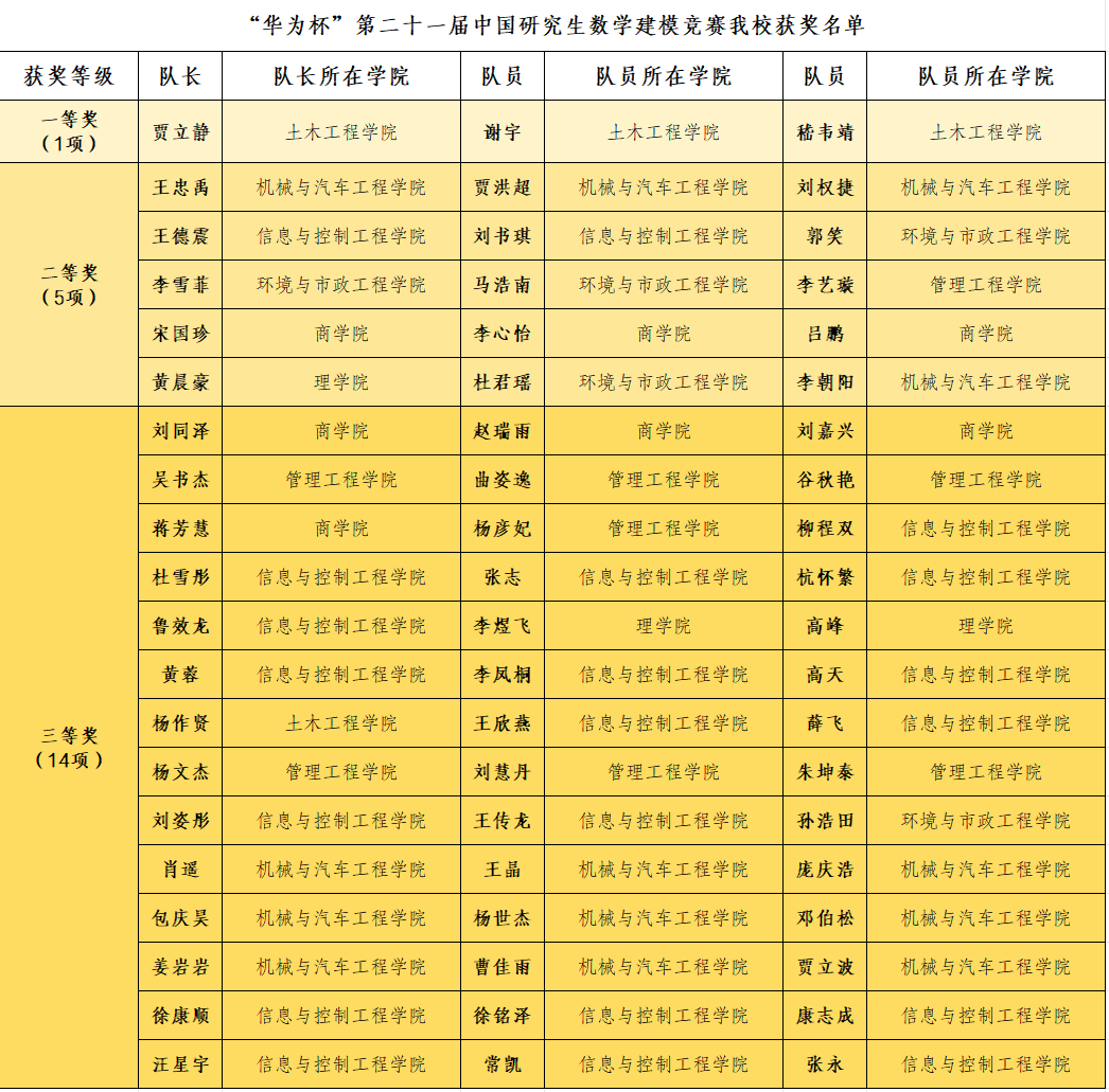 近日,第二十一届“华为杯”中国研究生数学建模竞赛成绩揭晓,伟德官网研究生在竞赛中表现突出,获国家一等奖1项、二等奖5项、三等奖14项,获奖数量位列山东省属高校第三,获奖质量和数量大幅提升。中国研究生数学建模竞赛是“中国研究生创新实践系列大赛”主题赛事之一,由教育部学位与研究生教育发展中心主办,国内外共521个研究生培养单位的20247队6万多名研究生参赛,参赛人数创历届赛事新高。