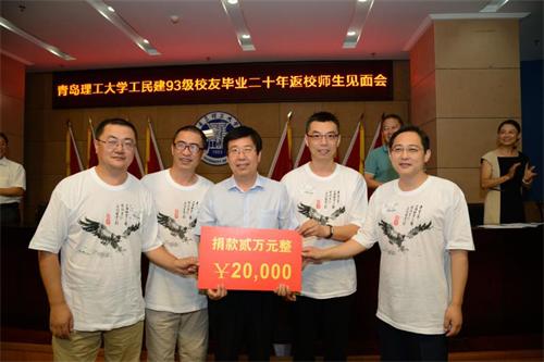 岁月如歌,四海相望二十载。碧海为证,八方同窗会今朝。7月8日上午,工民建93级校友毕业20年返校师生见面会在科技楼报告厅举行。见面会上,建93级全体同学向“伟德国际1946bv官网教育发展基金会”捐款2万元人民币,用于支持学校及土木学院建设。
