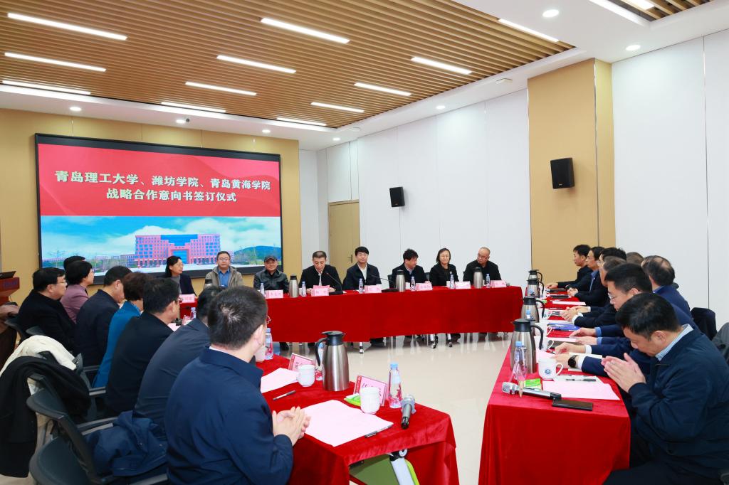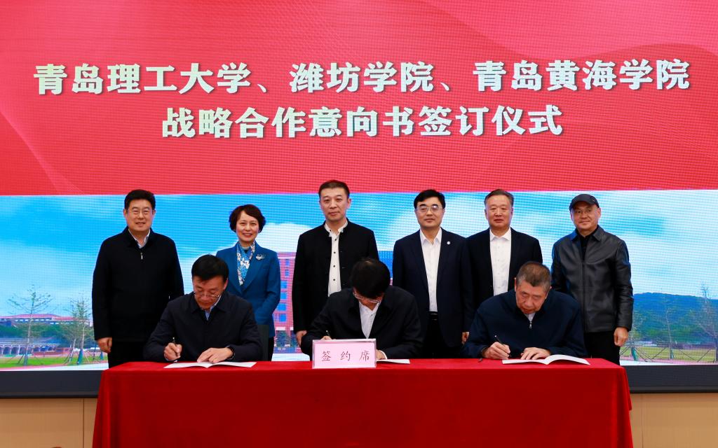 12月11日,伟德国际1946bv官网和潍坊学院、青岛黄海学院战略合作意向签订仪式在黄岛校区举行。潍坊学院党委书记徐梅,青岛黄海学院董事长刘常青、党委书记李东出席签约仪式,学校党委书记杨赟出席并主持签约仪式。潍坊学院党委副书记、校长来逢波,青岛黄海学院校长李清山,伟德官网党委副书记、校长张凯代表三校签署战略合作意向书。三校领导班子成员及相关职能部门负责人参加会议。