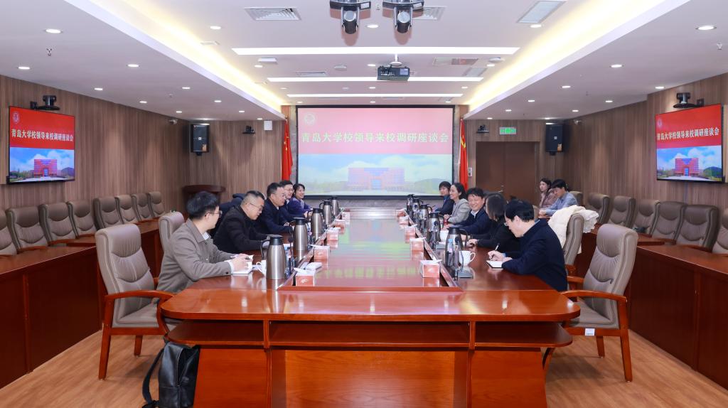 12月10日,青岛大学党委常委、副校长刘恩贤一行5人来校调研交流。副校长金祖权主持会议,党委常委、副校长陈韶娟参与座谈,发展规划与学科建设处处长周红燕及相关负责人参加会议。
