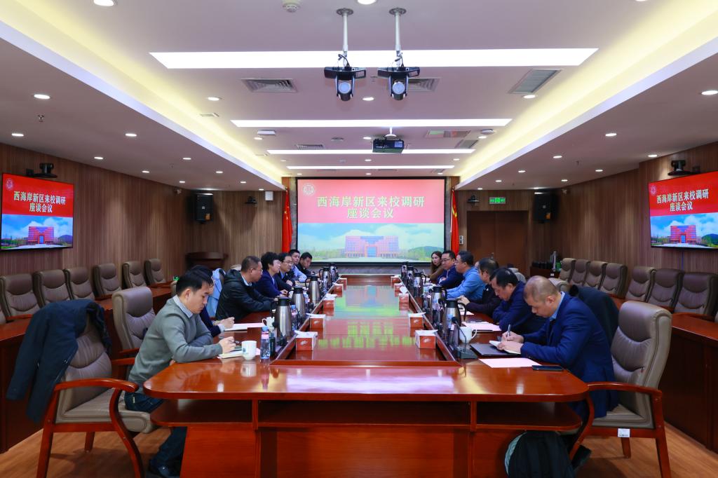 12月11日下午,青岛西海岸新区副区长赵楠一行来校调研座谈交流。党委副书记、校长张凯会见赵楠一行并简要介绍了学校基本情况。党委常委、副校长陈连军主持调研座谈会,科技处、成果转化中心及科发集团负责人等参加座谈交流。