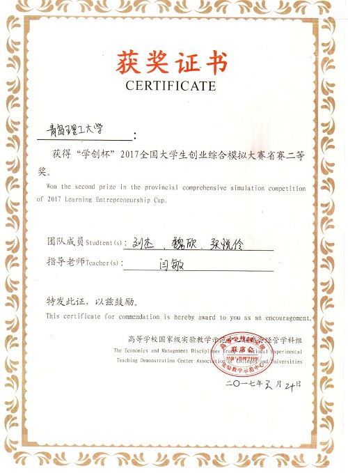 近日,“学创杯”2017年全国大学生创业综合模拟大赛省赛落下帷幕,伟德官网商学院闫敏老师指导的学生团队表现出色,荣获省赛二等奖2项。