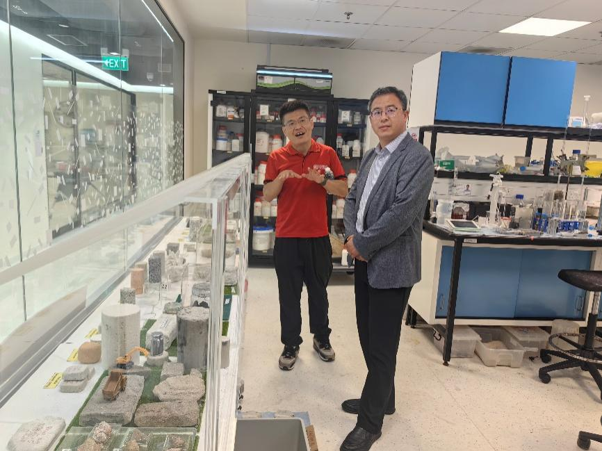 在南洋理工大学,代表团会见了新加坡工程院院士、该校土木与环境学院院长楚剑教授,学习借鉴该校土木专业教育管理先进经验,商谈双方在土木、环境相关专业硕士合作办学方面的规划,并访问了土木与环境学院实验室,与该院地下空间中心科研团队就科研合作事宜开展座谈交流。