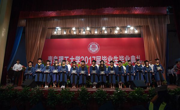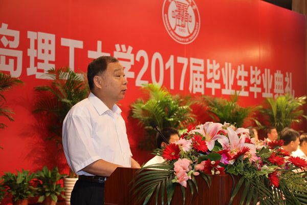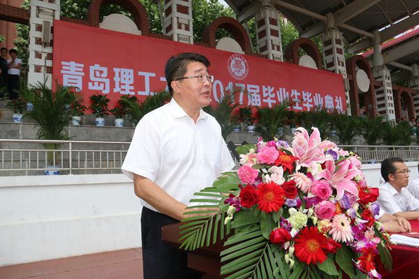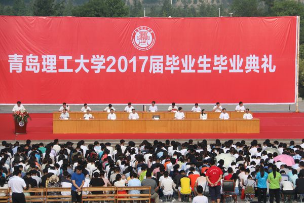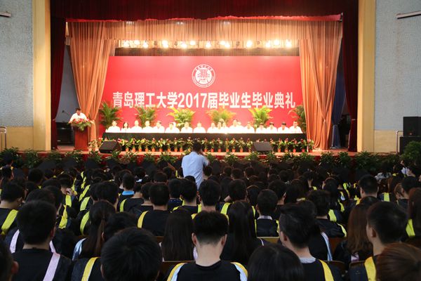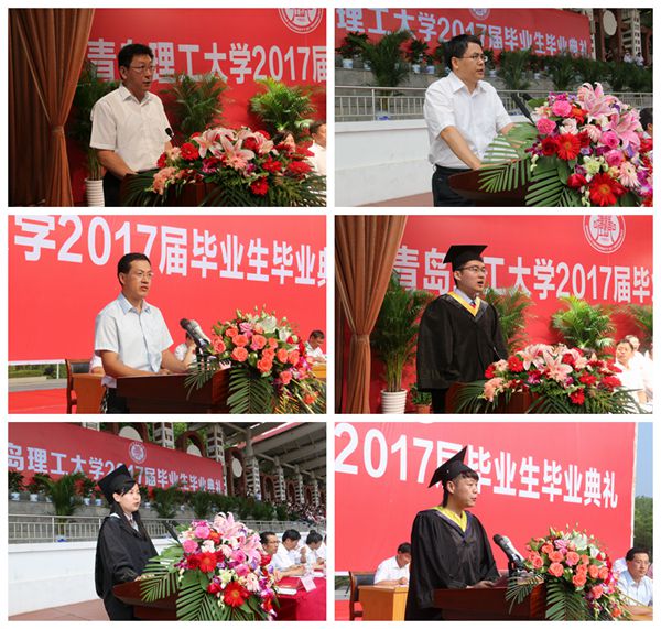 校党委书记、校长王亚军发表热情洋溢的讲话,校党委副书记杨向荣、副校长杨兴昌、李国华分别主持市北校区、黄岛校区、临沂校区典礼,副校长张伟星宣布各学院毕业生获得学位情况,临沂校区副校长朱卫东宣读《临沂校区关于表彰2017届优秀毕业生和考取硕士研究生同学的决定》。教师代表、毕业生代表先后在典礼上发言。
