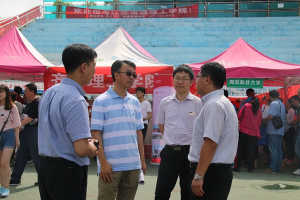 6月24日上午,驻鲁高校2017年招生咨询会(青岛场)暨伟德国际1946bv官网校园开放日活动在市北校区举行。来自全国各地的120余所高校参会,现场对考生进行志愿填报指导。约15000名考生及家长赶来现场咨询高考志愿填报。青岛市招考办副主任梁军及学校相关部门负责人与各高校参会人员、考生、家长进行现场交流。