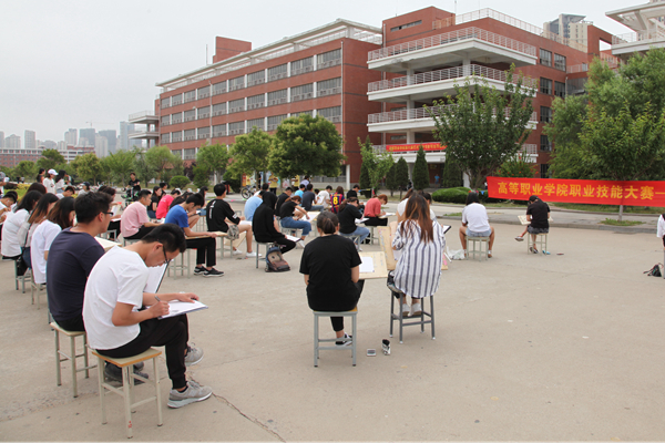 6月21日上午,高等职业学院第八届职业技能大赛暨第六届校外写生作品展在长江路校区篮球场举行。