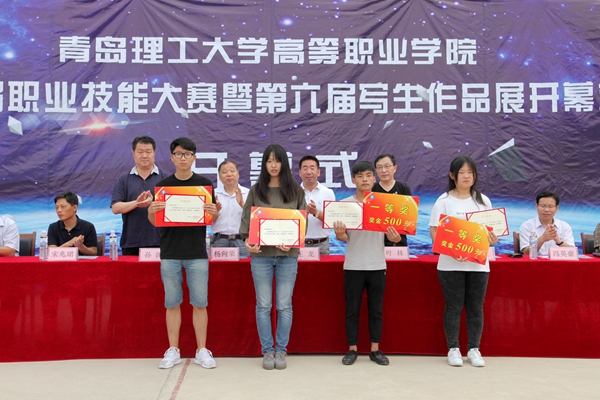 校党委副书记杨向荣讲话,并宣布第八届职业技能大赛暨第六届校外写生作品展开幕。团委、教务处、黄岛校区办、学生处、招就办、高等职业学院等部门负责人为校外写生优秀作品获奖学生颁奖。高等职业学院院长孙波致开幕词,党总支副书记冯英豪主持开幕式,副院长冯学军宣读2017年校外写生优秀作品表彰决定,校外写生指导教师代表李建国发言。高等职业学院师生参加开幕式。