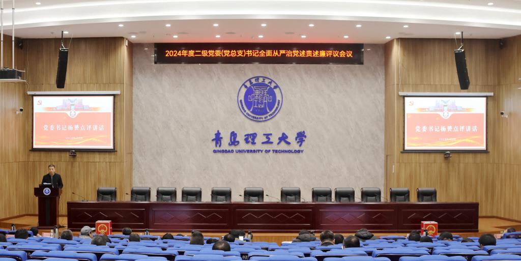 1月9日,学校在黄岛校区召开2024年度二级党委(党总支)书记全面从严治党述责述廉评议会。党委书记杨赟主持会议并作点评讲话。学校领导班子成员、相关部门负责人、各二级党委(党总支)书记、各教学院(部)院长(主任)和基层一线代表参加会议。