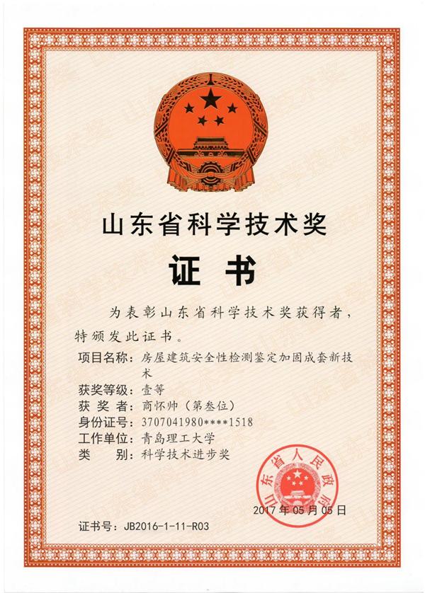 近日,2016年度山东省科技奖励大会在济南举行,由伟德官网土木学院商怀帅副教授作为第三完成人参与申报的项目“房屋建筑安全性检测鉴定加固成套新技术”获2016年山东省科技进步一等奖。