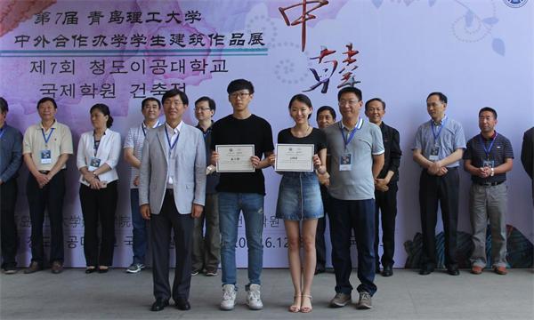 仪式上还为此前揭晓的第七届中外合作办学建筑设计作品展海报设计征集大赛获奖同学颁发了奖状和奖金。他们是一等奖刘珂瑜、魏然 ;二等奖陈钰剑、管芮、许晨曦 ;三等奖刘雨婷、周木子。
