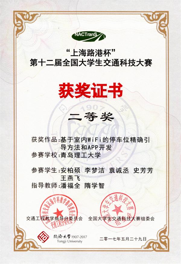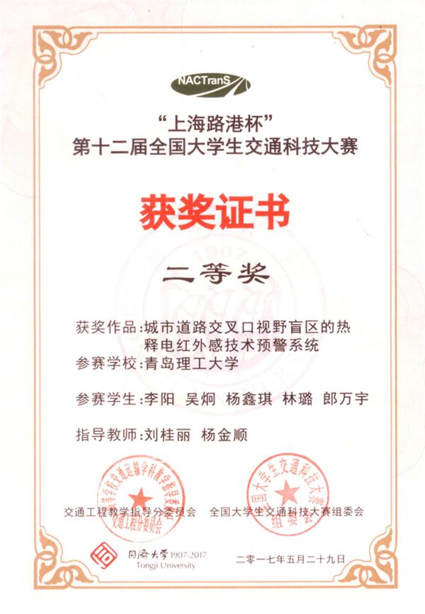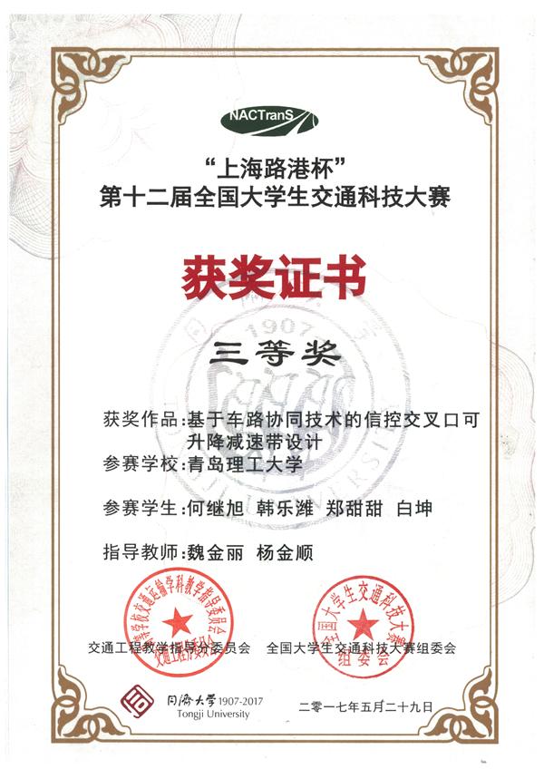 本届大赛共有全国120所高校报名,在初赛作品报送阶段,共有95所高校提交了302件作品;经过专家组匿名通讯评审,目前有来自51所高校的80件作品通过选拔进入决赛,伟德官网三份作品进入决赛。参赛作品《基于室内wifi的停车位精确引导与APP开发》》(作者:安柏硕、王燕飞、李梦洁、袁诚丞、史芳芳 指导老师:潘福全 隋学智)及《城市道路交叉口视野盲区的热释电红外感技术预警系统》(作者:李阳吴炯杨鑫琪林璐郎万宇 指导老师:刘桂丽 杨金顺)在决赛中均取得了二等奖的优异成绩;《基于车路协同的信控交叉口可升降减速带设计》(作者:郑甜甜、何继旭、白坤、韩乐潍 指导老师:魏金丽 杨金顺)获得三等奖。