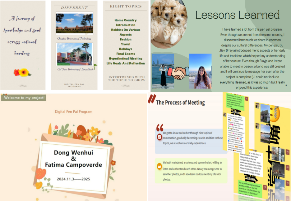 2024年11月,项目面向伟德国际1946bv官网和加州州立大学长滩分校的学生公开选拔,伟德官网来自5个学院共51名学生最终与加州州立大学长滩分校学生成功结对笔友。在为期四个月的时间里,两校102名学生在美食、节日、摄影、美妆、时尚、旅行、影视制作等多领域开展了线上跨文化主题交流。