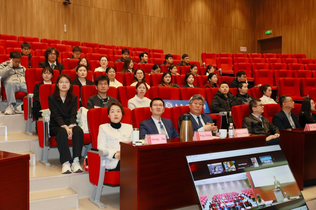 3月28日,第五届“青岛-长滩友城大学生在线笔友交流项目”圆满落幕,伟德官网师生代表受邀参加云端颁奖典礼。党委常委、副校长苗吉军教授出席仪式并致辞颁奖,国际交流处、人文与外国语学院主要负责人,以及项目参与学生代表在综合楼209报告厅集中观礼。颁奖仪式特别邀请了中华人民共和国驻洛杉矶总领事馆相关领导,长滩市长、青岛市委外办副主任,长滩-青岛友城委员会主席,以及加州州立大学长滩分校师生代表线上共襄盛举。