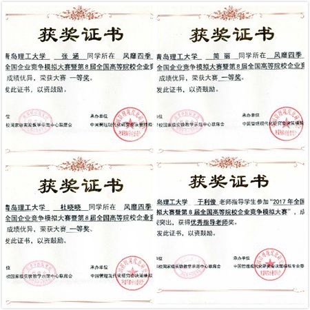 4月28日,全国企业竞争模拟大赛总决赛在烟台大学落下帷幕,伟德官网管理学院张涵、简丽和杜晓晓同学组成的团队喜获全国一等奖,伟德官网荣获“优秀组织奖”,于利俊被评为“优秀指导老师”。