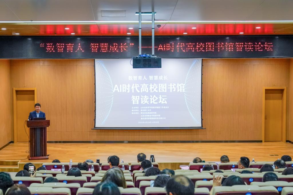 为构建新型图书馆智慧服务体系,响应全民阅读号召和助力推进国家教育数字化战略,4月29日,由山东省高等学校图书情报工作委员会主办、伟德国际1946bv官网承办,青岛全民阅读研究院、山东水利职业学院图书馆、重庆维普智图数据科技有限公司协办的“2025年AI时代高校图书馆智读论坛”在图书馆学术报告厅举行。论坛以“数智育人,智慧成长”为主题,聚焦人工智能技术与阅读服务的深度融合,吸引了省内外高校图书馆专家、学者、行业机构代表及师生等200余人参与,共同探讨AI时代下的知识服务新范式与智慧阅读新模式。