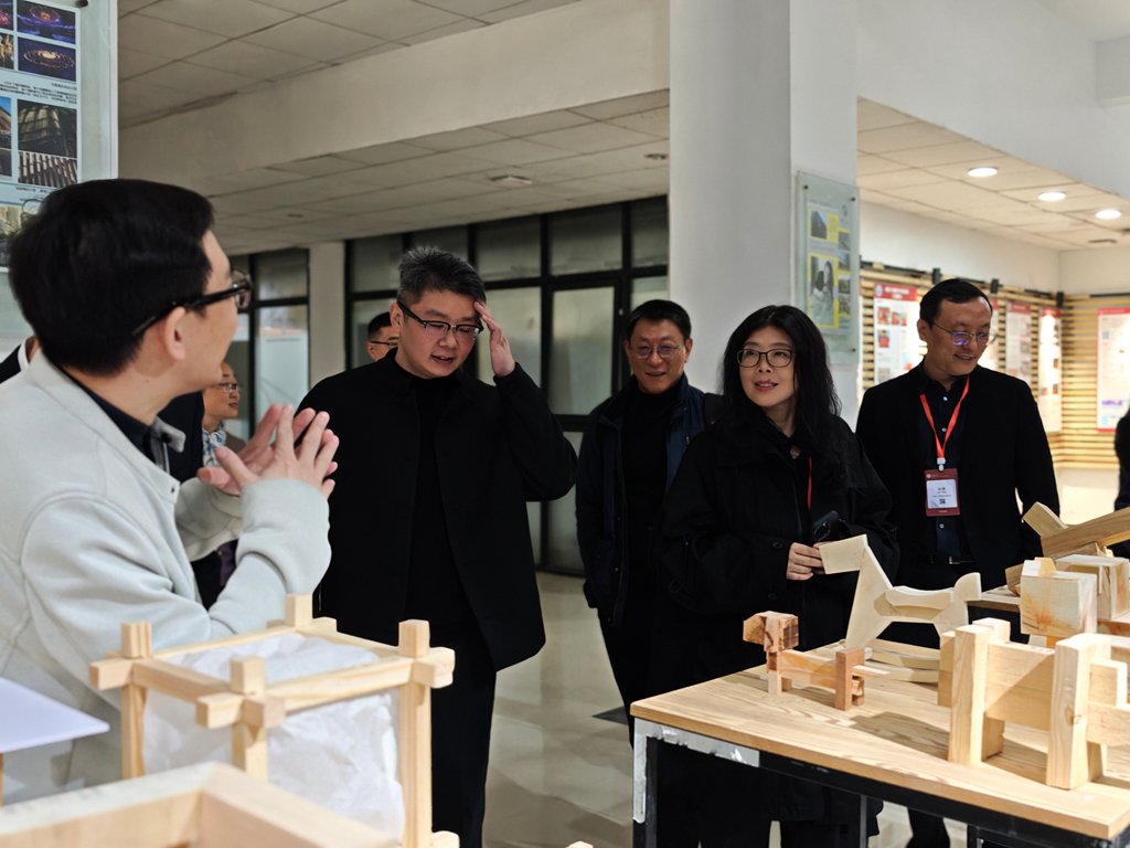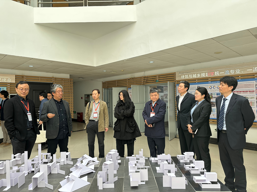 会后,专家组视察了建筑馆、滨海人居环境学术创新中心等教学设施,观摩了学院发展历史主题展、党建工作主题展、建筑学专业建设主题展、联合毕业设计成果主题展、国家一流课程《中国建筑史》《建筑设计基础》成果主题展等。