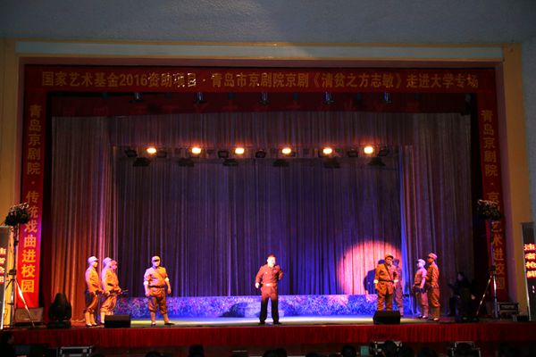 3月29日下午,由青岛市京剧院推出的原创京剧《清贫之方志敏》在伟德官网市北校区礼堂举行了高校巡演首场演出,来自土木、建筑、环境、艺术学院的新生及部分研究生和教工约1300人观看了演出。