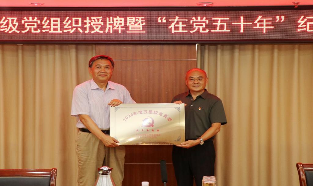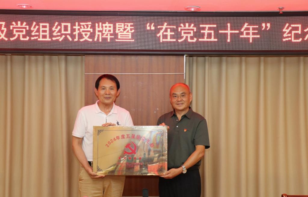 近日,离退休党委举行了一场庄重而温馨的五星级党支部授牌仪式,同时为党龄达到50年的老党员颁发“光荣在党50年”纪念章,激励广大党员传承红色基因,赓续精神血脉。党委副书记李长河、离退休工作处全体工作人员、离退休党委委员、离退休支部书记、“在党五十年”纪念章获得者参加活动。会议由离退休党委书记李洪民主持。