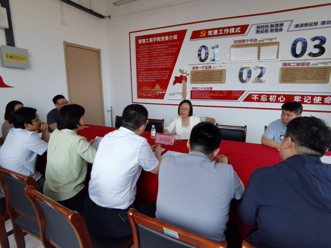 陈韶娟认真听取了支部教师关于科研团队建设、产教融合等瓶颈问题汇报,并现场进行指导。她强调,党支部要以“学”筑基,将党纪学习纳入教师发展必修课,定期组织专题学习、案例研讨,引导教师党员严守纪律红线,筑牢思想防线,不断提升自身的政治素养和职业道德水平;以“干”促行,充分发挥党支部的战斗堡垒作用,推动党建与国家级一流专业建设同频共振,在课程建设、教学改革、实习实践等环节融入党建元素,实现党建工作与专业建设的深度融合。她鼓励全体党员,要以此次授牌为新起点,把党旗插在教书育人第一线,在课堂教学、科研攻关、学生指导等工作中,发挥党员先锋模范作用,为申报管理科学与工程博士点凝聚红色动能,助力学院在学科建设、人才培养等方面实现新的突破。(撰稿:宋晓峰;审核:孟凡勇)