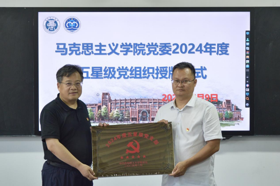 陈伟宣读学校《关于命名2024年度五星级党支部的通知》,并对党支部存在的问题进行反馈。车景华为荣获“2024年度五星级党支部”的新时代国企党建协同创新中心教师党支部、马克思主义基本原理教研室党支部授牌。党支部书记李龙强、王妺交流党支部建设工作经验。