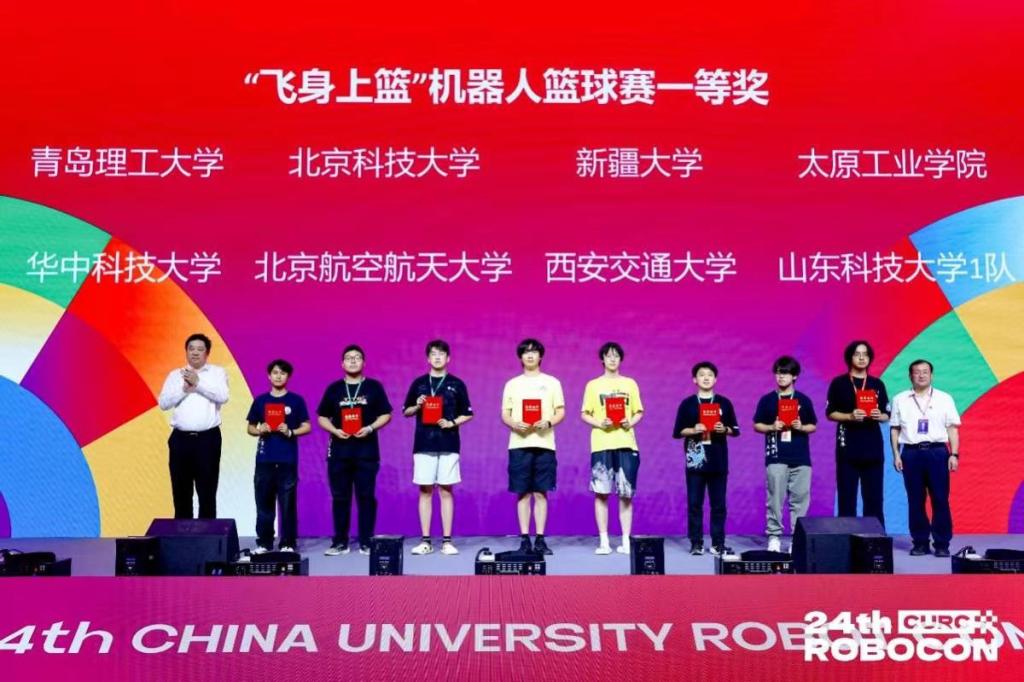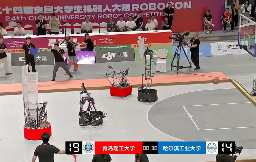 大赛以“飞身上篮”为主题,借鉴篮球运动元素,设置运球突破、精准投篮等任务,全面考察机器人的机动性、团队战术协同与工程创新水平。机械与汽车工程学院沧溟机器人战队在王飞、官源林、赵娟和刘松年等教师指导下,参加了“飞身上篮”2v2项目的角逐。比赛中,团队配合默契,综合应用多学科知识技术,队员各司其职、稳定发挥,接连战胜哈尔滨工业大学、东北大学、北京科技大学、中国石油大学(北京)等,最终斩获赛区四强、全国八强及全国一等奖。