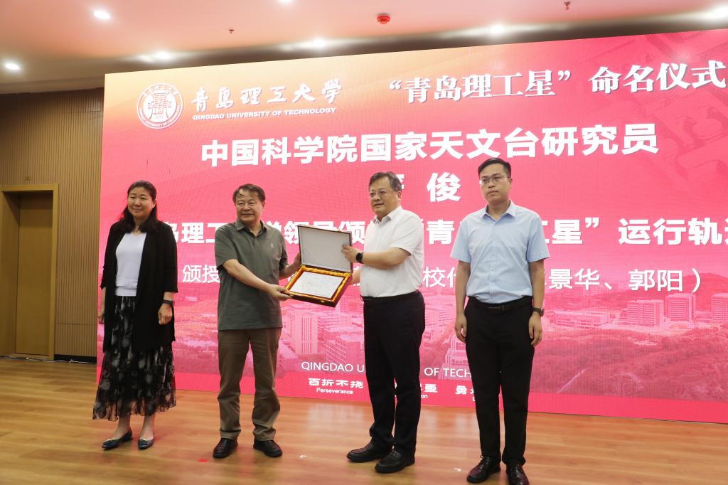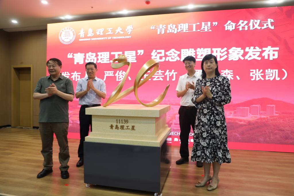 仪式上,与会人员共同观看了“青岛理工星”宣传视频,姜鹏宣读“青岛理工星”国际命名公报并向学校颁授“青岛理工星”命名公报和命名证书;严俊向学校颁授“青岛理工星”运行轨道图;刘静介绍了“青岛理工星”发现过程;严俊、王芸竹、谭秀森、张凯共同发布“青岛理工星”纪念雕塑形象。