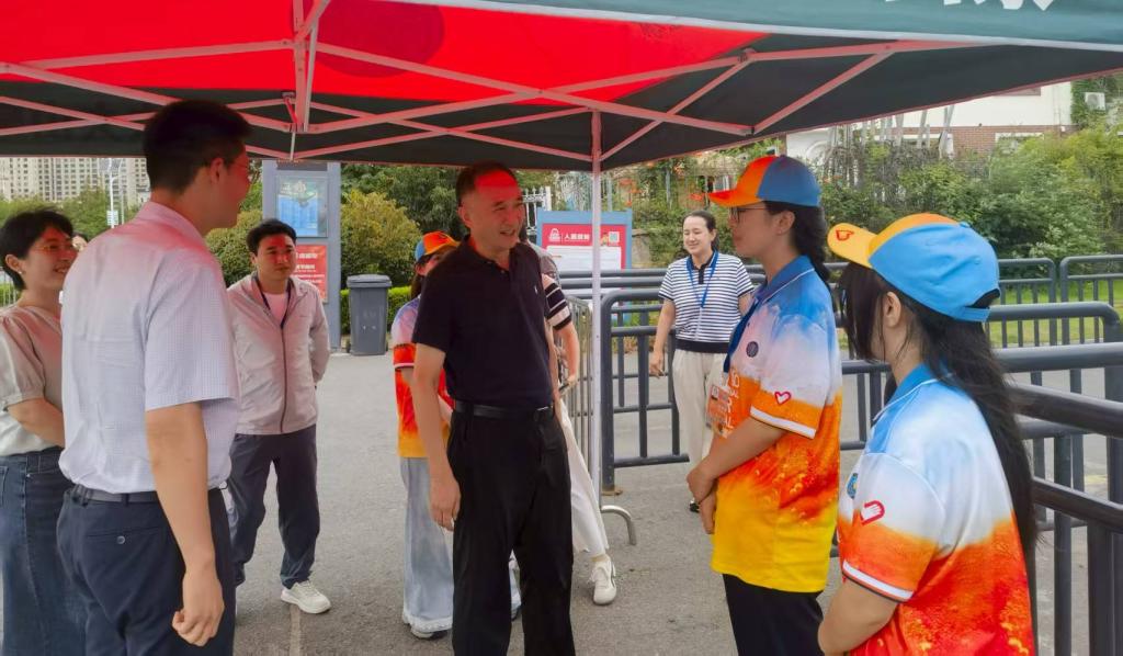 郭建锋一行先后来到园区核验入口、志愿者之家、游客服务中心等地,与志愿者们一一握手、亲切交谈,发放消暑慰问品,详细了解他们的工作时间、工作职责以及需求保障等,对志愿者们不惧酷暑、积极投身志愿服务的奉献精神和出色工作表现表示高度肯定,亲切叮嘱志愿者们注意劳逸结合,科学防暑降温,确保自身健康安全。新区团委现场负责同志详细介绍了志愿者们的工作分工和岗位职责。