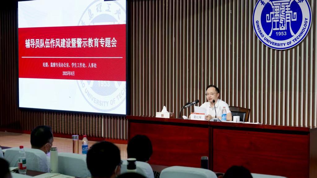 为深入贯彻中央八项规定精神,进一步提升辅导员队伍廉政意识、责任意识和履职本领,8月22日,学校召开辅导员队伍作风建设暨警示教育专题会。校党委常委、纪委书记、监察专员夏红军作专题报告,校党委常委、副校长郭建锋主持报告会并总结讲话。全校学生工作干部、新入职教师近200人参加学习。