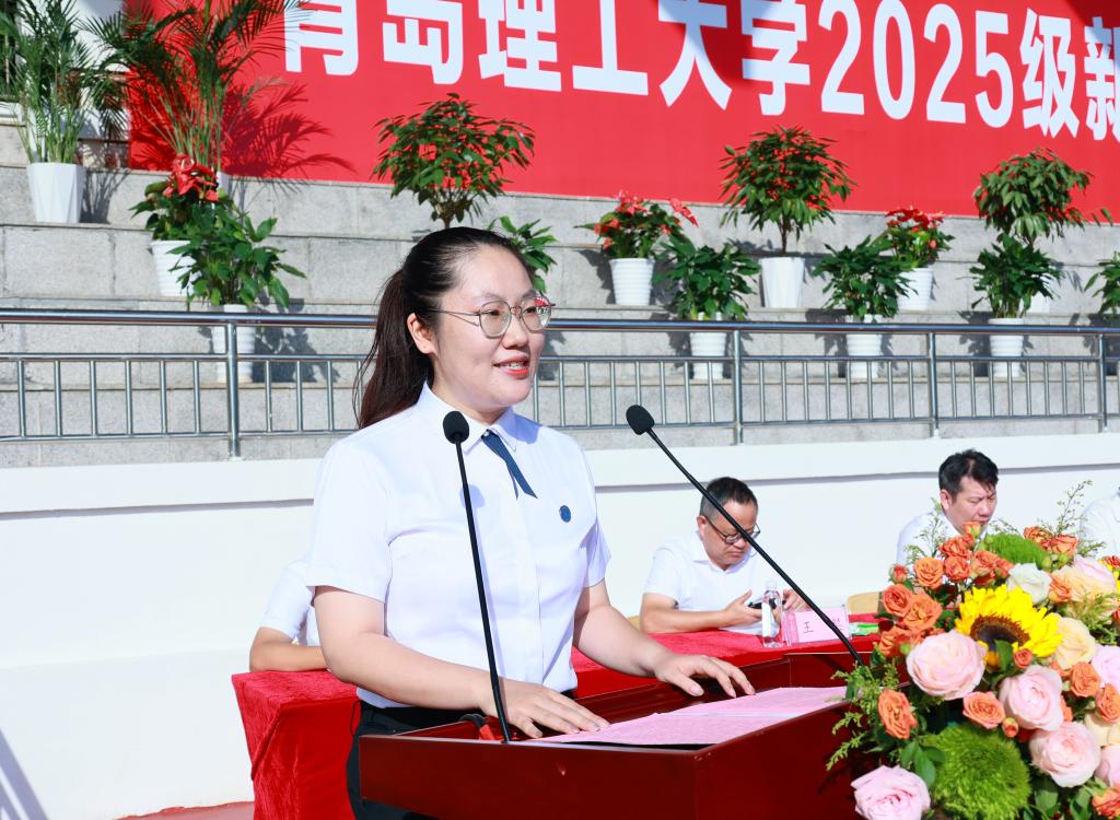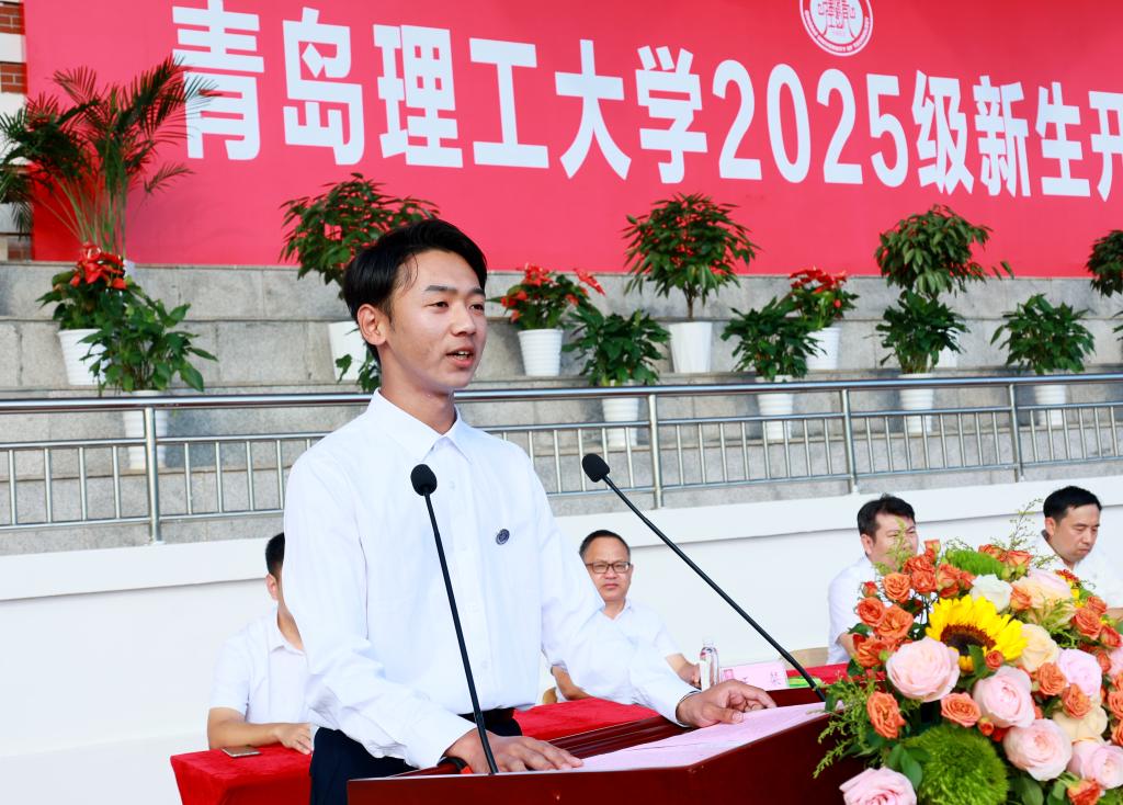 信息与控制工程学院计算机科学与技术专业本科生李旭辰、管理工程学院工业工程与管理专业研究生靳鑫诺作为新生代表发言,表示将把个人理想融入学校的发展脉搏,把青春奋斗汇入国家发展洪流,做“严谨、勤奋、求实、创新”的青岛理工人,扎根祖国大地,紧扣国家战略需求,解决社会发展实际问题,让知识真正转化为推动社会进步的力量,让优秀的自己为母校的星河增添璀璨!