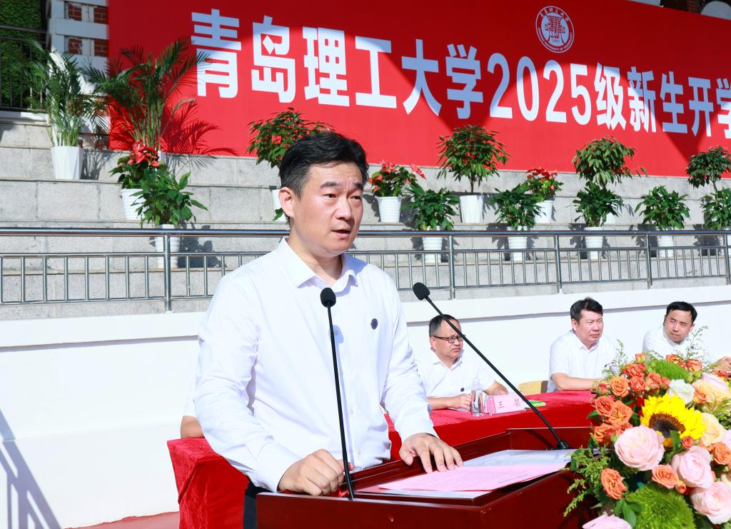 洪金鑫在致辞中代表西海岸新区欢迎新同学,介绍了西海岸新区的发展历史、目标定位、人文自然和科创成果,他表示,作为西海岸新区引进的第一所高校,伟德国际1946bv官网在产教融合、科教融汇、人才引育、成果转化等多个领域与新区紧密合作、成果丰硕,尤其是今年合作共建的青理工福瀛科技园的启用,开创了“高校+民企”协同建设大学科技园区的示范样板,希望同学们在这里练就真才实学,习得扎实本领,融入青春西海岸,共享发展新未来。