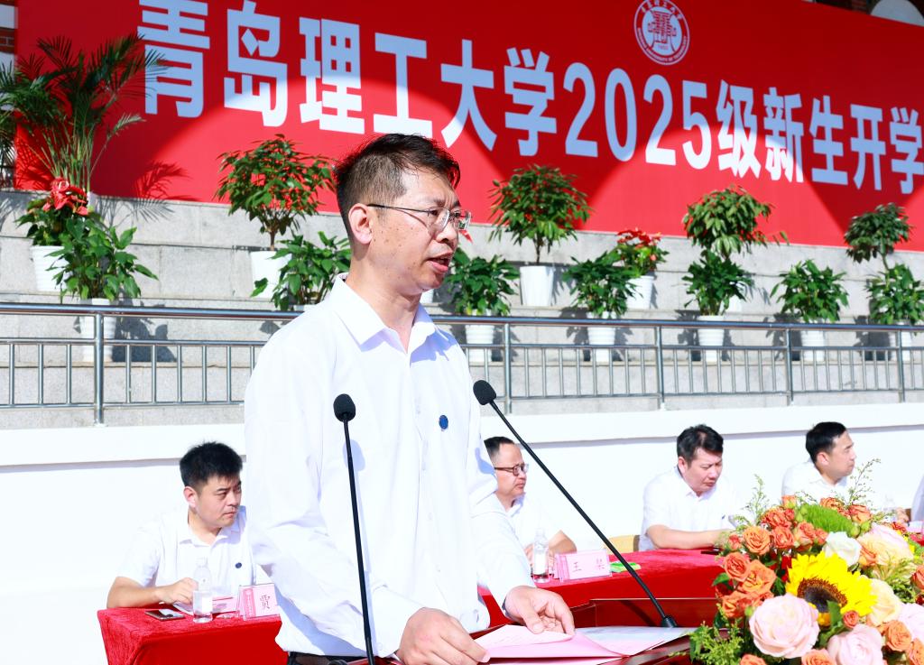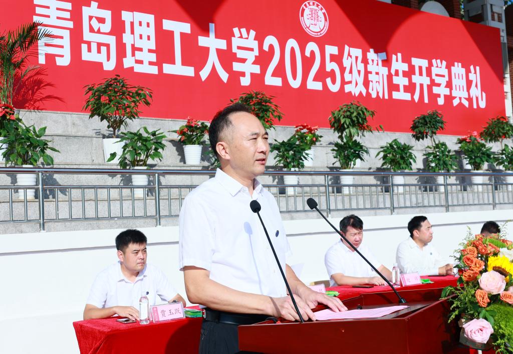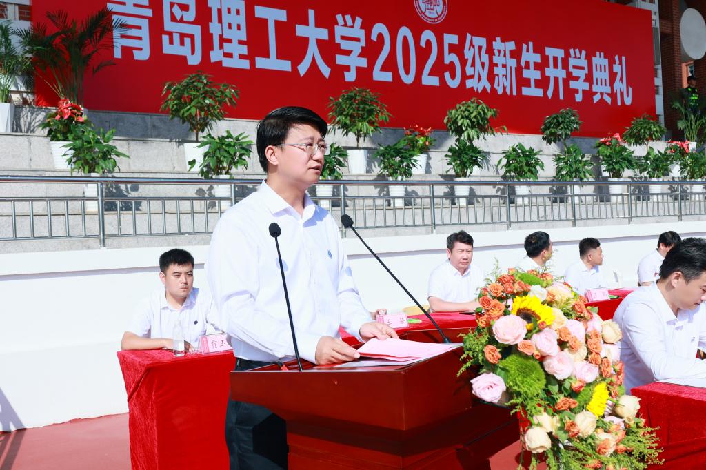 党委书记杨赟,党委副书记、校长张凯,青岛西海岸新区副区长洪金鑫,学校领导班子其他成员,校友代表、东南大学首席教授、土木工程学院院长、国家杰出青年科学基金获得者、国家“万人计划”科技创新领军人才郭彤,教师代表、商学院教授、学校首批“礼贤学者”特聘教授刁伟涛,相关职能部门和各学院负责同志出席典礼。开学典礼由党委常委、副校长郭建锋主持。