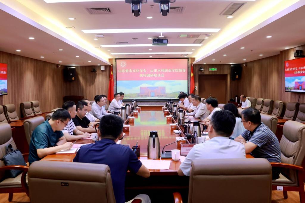 9月11日,山东省水利厅原党组成员、副厅长、一级巡视员,山东省水文化学会党支部书记张建德,山东水利职业学院党委书记王维一行来校调研座谈。校党委书记杨赟主持座谈会,党委副书记、校长张凯,党委副书记车景华出席座谈。