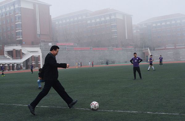副校长李东为学生足球联赛开球