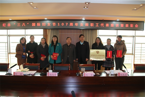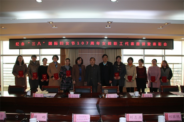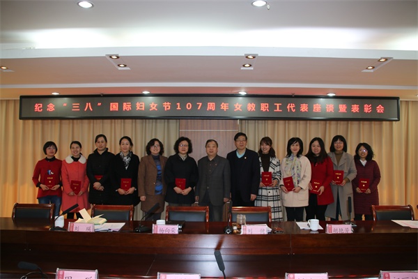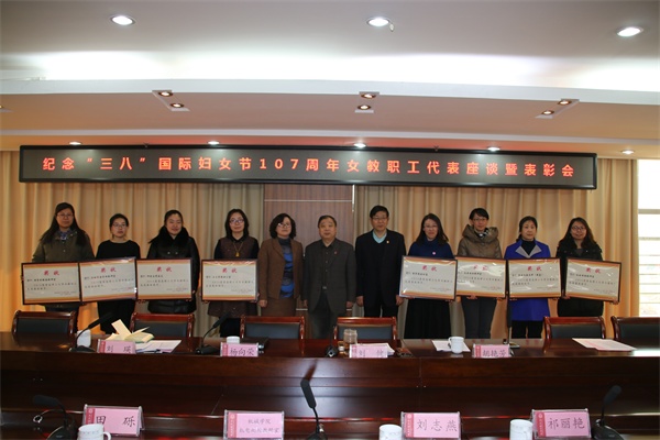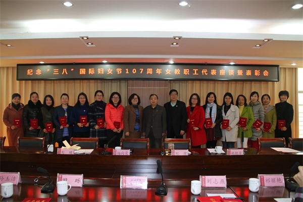 3月7日下午,学校召开纪念“三八”国际妇女节107周年女教职工代表座谈暨表彰会。校党委副书记杨向荣,校工会、妇委会负责人与70多名女教职工代表欢聚一堂,表彰先进,分享经验,庆祝节日。